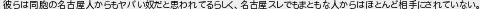彼らは同胞の名古屋人からもヤバい奴だと思われてるらしく名古屋スレでもまともな人からはほとんど相手にされていない
