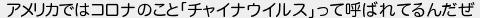 アメリカではコロナのことチャイナウイルスって呼ばれてるんだぜ