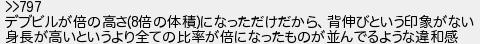 デブビルが倍の高さ倍の体積になっただけだから背伸びという印象がない 身長が高いというより全ての比率が倍になったものが並んでるような違和感