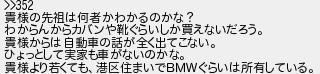 353: (愛知県) [] 2020/10/02(金) 06:07:57.23 ID:KT392o2O >>352 貴様の先祖は何者かわかるのかな? わからんからカバンや靴ぐらいしか買えないだろう。 貴様からは自動車の話が全く出てこない。 ひょっとして実家も車がないのかな。 貴様より若くても、港区住まいでBMWぐらいは所有している。 http://egg.5ch.io/test/read.cgi/develop/1601461387/353