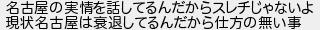 名古屋の実情を話してるんだからスレチじゃないよ 現状名古屋は衰退してるんだから仕方の無い事