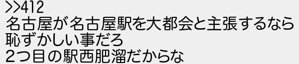名古屋が名古屋駅を大都会と主張するなら 恥ずかしい事だろ 2つ目の駅西肥溜だからな