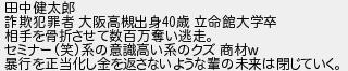 田中健太郎 詐欺犯罪者 大阪高槻出身歳 立命館大学卒 相手を骨折させて数百万奪い逃走 セミナー笑系の意識高い系のクズ 商材 暴行を正当化し金を返さないような輩の未来は閉じていく