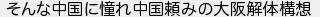 899: (茸) [] 2020/10/15(木) 07:30:12.48 ID:qhPjZIic そんな中国に憧れ中国頼みの大阪解体構想 http://egg.5ch.io/test/read.cgi/develop/1601638102/899