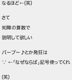 なるほど笑 さて 知障の算数で 説明して欲しい バーブーとか発狂は なぜならば記号使ってくれ 笑