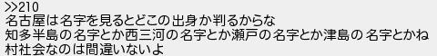 名古屋は名字を見るとどこの出身か判るからな 知多半島の名字とか西三河の名字とか瀬戸の名字とか津島の名字とかね 村社会なのは間違いないよ