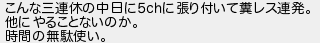 こんな三連休の中日に5に張り付いて糞レス連発 他にやることないのか 時間の無駄使い