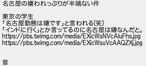 名古屋の嫌われっぷりが半端ない件 東京の学生 名古屋勤務は嫌ですと言われる笑 インドに行くとか言ってるのに名古屋は嫌なんだと 草