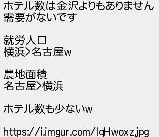 ホテル数は金沢よりもありません 需要がないです 就労人口 横浜名古屋 農地面積 名古屋横浜 ホテル数も少ない