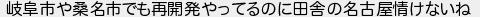 岐阜市や桑名市でも再開発やってるのに田舎の名古屋情けないね