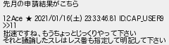 194: (ジパング) [sage] 2021/02/18(木) 09:04:11 ID:nOUafHaj 先月の申請結果がこちら 12:Ace ★ 2021/01/16(土) 23:33:46.81 ID:CAP_USER9 >>11 拙速ですね、もうちょっとじっくりやって下さい それと議論したスレはレス番も指定して明記して下さい http://egg.5ch.net/test/read.cgi/develop/1613304613/194