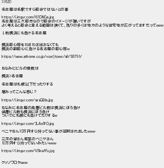 名古屋は名駅ですら都会ではないとの事 名古屋は三大都市なので都会のイメージが強いですが よく考えると都会と言える範囲は狭くて残りの多くは地方のような住宅地が広がってますだって 新横浜にも負ける名古屋 横浜都心部をわざわざ出さなくても 横浜の副都心に負ける名古屋の都心部 ちなみにビルの棟数は 横浜名古屋 名古屋は札幌以下だったりする 厚みってこんな感じ? ちなみに名古屋の高層ビル数は横浜にぼろ負け 低層ビル数も横浜にぼろ負け ついでに札幌にも負けてたりする ベニヤさん万円すら持ってない事が証明されました 三河の皆さん尾張のベニヤさん 万円すら持ってないみたい クッソワロタ