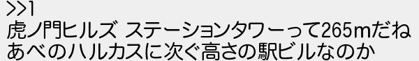 151: (東京都) [] 2021/06/01(火) 05:18:31.27 ID:40yA+jMk >>1 虎ノ門ヒルズ ステーションタワーって265mだね あべのハルカスに次ぐ高さの駅ビルなのか http://egg.5ch.io/test/read.cgi/develop/1619665571/151