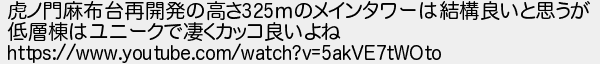 181: (東京都) [] 2021/06/06(日) 17:09:27.93 ID:9sdLEwns 虎ノ門麻布台再開発の高さ325mのメインタワーは結構良いと思うが 低層棟はユニークで凄くカッコ良いよね https://www.youtube.com/watch?v=5akVE7tWOto http://egg.5ch.io/test/read.cgi/develop/1619665571/181