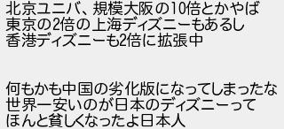 北京ユニバ規模大阪の倍とかやば 東京の倍の上海ディズニーもあるし 香港ディズニーも倍に拡張中 何もかも中国の劣化版になってしまったな 世界一安いのが日本のディズニーって ほんと貧しくなったよ日本人