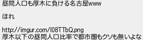 昼間人口も厚木に負ける名古屋 ほれ 厚木以下の昼間人口比率で都市圏もクソも無いよな