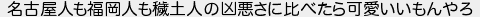 名古屋人も福岡人も土人の凶悪さに比べたら可愛いいもんやろ