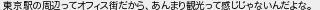 東京駅の周辺ってオフィス街だからあんまり観光って感じじゃないんだよな