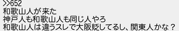 和歌山人が来た 神戸人も和歌山人も同じ人やろ 和歌山人は違うスレで大阪してるし関東人かな?