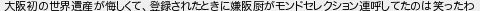 大阪初の世界遺産が悔しくて登録されたときに嫌阪厨がモンドセレクション連呼してたのは笑ったわ