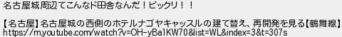 492: (光) [] 2021/07/17(土) 19:58:50 ID:j0vsQ7Mz 名古屋城周辺てこんなド田舎なんだ!ビックリ!! 【名古屋】名古屋城の西側のホテルナゴヤキャッスルの建て替え、再開発を見る【鶴舞線】 https://m.youtube.com/watch?v=OH-yBa1KW70&list=WL&index=3&t=307s http://egg.5ch.io/test/read.cgi/develop/1626260421/492