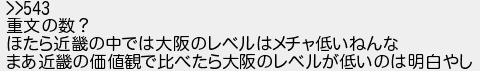 554: 大阪は京都の金魚のフンやな(東京都) [] 2021/07/18(日) 12:07:22 ID:Xl9KfTn+ >>543 重文の数? ほたら近畿の中では大阪のレベルはメチャ低いねんな まあ近畿の価値観で比べたら大阪のレベルが低いのは明白やし http://egg.5ch.io/test/read.cgi/develop/1626260421/554