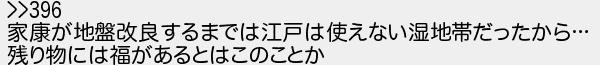 家康が地盤改良するまでは江戸は使えない湿地帯だったから 残り物には福があるとはこのことか