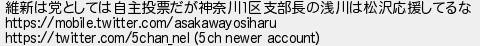 維新は党としては自主投票だが神奈川区支部長の浅川は松沢応援してるな