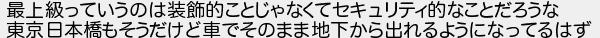 120: (ジパング) [] 2021/08/17(火) 19:56:30 ID:Lo5PZhaf 最上級っていうのは装飾的ことじゃなくてセキュリティ的なことだろうな 東京日本橋もそうだけど車でそのまま地下から出れるようになってるはず http://egg.5ch.net/test/read.cgi/develop/1629106513/120