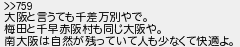 大阪と言うても千差万別やで 梅田と千早赤阪村も同じ大阪や 南大阪は自然が残っていて人も少なくて快適よ