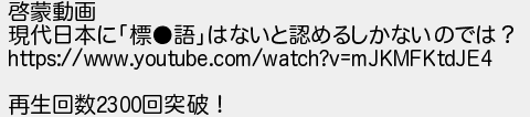 6: (東京都) [sage] 2021/09/10(金) 23:40:58.11 ID:2qT45y88 啓蒙動画 現代日本に「標●語」はないと認めるしかないのでは? https://www.youtube.com/watch?v=mJKMFKtdJE4 再生回数2300回突破! http://egg.5ch.net/test/read.cgi/develop/1630807159/6