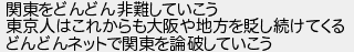 関東をどんどん非難していこう 東京人はこれからも大阪や地方をし続けてくる どんどんネットで関東を論破していこう