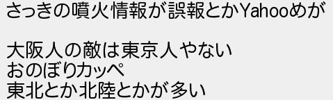さっきの噴火情報が誤報とかめが 大阪人の敵は東京人やない おのぼりカッペ 東北とか北陸とかが多い