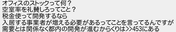 オフィスのストックって何? 空室率を礼賛しろってこと? 税金使って開発するなら 入居する事業者が増える必要があるってことを言ってるんですが 需要とは関係なく都内の開発が進むからくりはにある
