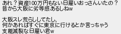 あれ?資産万円もない日雇いおっさんいたの? 昔から大阪に劣等感あるしね 大阪スレ荒らししてたし 何かあればすぐに東京に行けるとか言っちゃう 支離滅裂な日雇い君