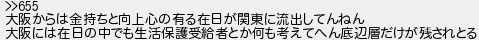 大阪からは金持ちと向上心の有る在日が関東に流出してんねん 大阪には在日の中でも生活保護受給者とか何も考えてへん底辺層だけが残されとる