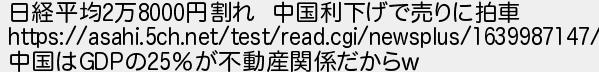 730: (東京都) [sage] 2021/12/21(火) 08:44:09 ID:mGQFIuBh 日経平均2万8000円割れ 中国利下げで売りに拍車 https://asahi.5ch.net/test/read.cgi/newsplus/1639987147/ 中国はGDPの25%が不動産関係だからw http://egg.5ch.net/test/read.cgi/develop/1639706113/730