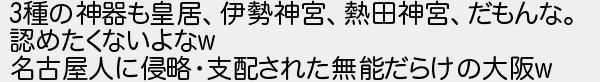 種の神器も皇居伊勢神宮熱田神宮だもんな 認めたくないよな 名古屋人に侵略支配された無能だらけの大阪