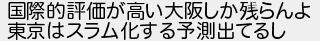 国際的評価が高い大阪しか残らんよ 東京はスラム化する予測出てるし