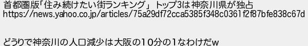685: (SB-Android) [] 2022/01/15(土) 14:41:10.33 ID:/w/qPIJ8 首都圏版「住み続けたい街ランキング」 トップ3は神奈川県が独占 https://news.yahoo.co.jp/articles/75a29df72cca5385f348c0361f2f87bfe838c67d どうりで神奈川の人口減少は大阪の10分の1なわけだw http://egg.5ch.net/test/read.cgi/develop/1641860880/685