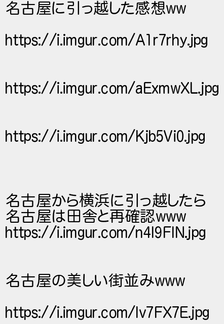 369: (茸) [] 2022/04/29(金) 18:59:39 ID:4Px+oiTX 名古屋に引っ越した感想ww https://i.imgur.com/A1r7rhy.jpg https://i.imgur.com/aExmwXL.jpg https://i.imgur.com/Kjb5Vi0.jpg 名古屋から横浜に引っ越したら 名古屋は田舎と再確認www https://i.imgur.com/n4I9FIN.jpg 名古屋の美しい街並みwww https://i.imgur.com/lv7FX7E.jpg http://egg.5ch.net/test/read.cgi/develop/1642106138/369