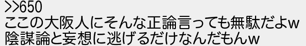 ここの大阪人にそんな正論言っても無駄だよ 陰謀論と妄想に逃げるだけなんだもん