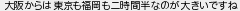 大阪からは東京も福岡も二時間半なのが大きいですね