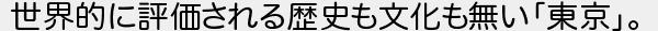 89: (兵庫県) [] 2022/02/10(木) 20:43:32 ID:RmD35Jxu 世界的に評価される歴史も文化も無い「東京」。 http://egg.5ch.net/test/read.cgi/develop/1644483642/89