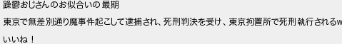 おじさんのお似合いの最期 東京で無差別通り魔事件起こして逮捕され死刑判決を受け東京拘置所で死刑執行される いいね!