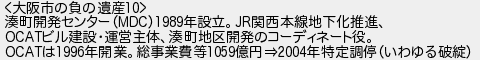 大阪市の負の遺産 湊町開発センター年設立関西本線地下化推進 ビル建設運営主体湊町地区開発のコーディネート役 は年開業総事業費等億円年特定調停いわゆる破綻