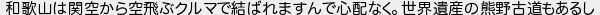 和歌山は関空から空飛ぶクルマで結ばれますんで心配なく世界遺産の熊野古道もあるし