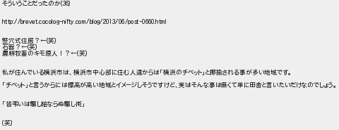 そういうことだったのか 竪穴式住居?笑 石器?笑 農耕牧畜のキモ原人!?笑 私が住んでいる横浜市は横浜市中心部に住む人達からは横浜のチベットとされる事が多い地域です チベットと言うからには標高が高い地域とイメージしそうですけど実はそんな事は無くて単に田舎と言いたいだけなのでしょう 皆弔いはし絵ならぬし街 笑