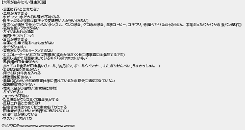 750: (東京都) [sage] 2023/01/10(火) 11:54:52.32 ID:K5gRPgGM 【大阪が住みにくい理由30選】 ・公園に行くと乞食だらけ ・全域が汚すぎる ・水がウンコ水だから料理が不味くなる ・陽キャぶるが実際は陰キャで愛想悪い人が多い(冷たい) ・食文化が独特で受け付けない(トンスル、ウンコ焼き、ゲロのみ焼き、生卵コーヒー、ゴキブリ、砂糖ドバドバ出汁のうどん、本場ぶったパサパサの食パン(駄作)) ・気持ち悪いヲタクが多い ・ガイジまみれの通勤 ・南海トラフでパニック ・治安が悪すぎる ・自国の企業で誇るべきものがない ・全てがショボい ・吉野家とマックとラーメンすらない ・エスカレーターが右立ち(世界標準(笑)とかほざくくせに標準語には発狂するアホ) ・整形し過ぎて顔面崩壊しているキャバ嬢やホストが多い ・風俗嬢が田舎者ばかり ・売っている食品が田舎臭い(カール、満月ポン、ポールウインナー、おにぎりせんべい、うまかっちゃん…) ・まともな握り寿司がない ・何でも似非牛肉を入れる ・標準語を認めない ・碁盤(笑)とかいう知的障害仕様に慣れているため都会に適応できていない ・歴史的建物が少ない ・花火大会がショボい(東京様に惨敗) ・ガイジが多い ・コロッケが不味い ・たこ焼きがウンコ臭くて吐き気がする ・反日工作員と乞食だらけ ・田舎者の集まりのくせに東京をバカにする ・田舎者が多いせいか流行りに流されやすい ・政治行政が腐っている ・マスメディアがバカ クッソワロタwwwwwwwwwwwwwwwwwwww http://egg.5ch.io/test/read.cgi/develop/1672907985/750