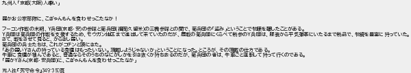131: (ジパング:東京都) [] 2024/01/30(火) 01:39:12.54 ID:G6pa6c8z 九州人「京都(大阪)人嫌い」 弱かお公家部隊に、こぎゃんもんを食わせっこたなか! フーコン作戦の末期、Y兵団(京都・安)の参謀と菊兵団(福岡久留米)の三橋参謀との間で、菊兵団の「盗み」ということで物議を醸したことがある。 Y兵団は菊兵団の作戦を支援するため、モウガン地区まで進出して来ていたのだが、歴戦の菊兵団にくらべて新参のY兵団は、服装から平気弾薬にいたるまで新品で、物資を豊富に持っていた。 さて、戦をさせて見ると、からきし弱い。 菊兵団の兵士たちは、これがコチンと頭にきた。 「あの弱いYさんの持っている食糧はもったいない。頂戴しようじゃないか」ということになった。ところが、その頂戴の仕方である。 牛車に食糧が積んであると、普通ならそのうちのなにがしかを引き抜くか持ち去るのだが、菊兵団の者は、牛車ごと運転して持って行くのである。 「弱かYさん(京都・安兵団)に、こぎゃんもんを食わせっこたなか」 光人社『死守命令』349~350頁 http://egg.5ch.net/test/read.cgi/develop/1706065643/131